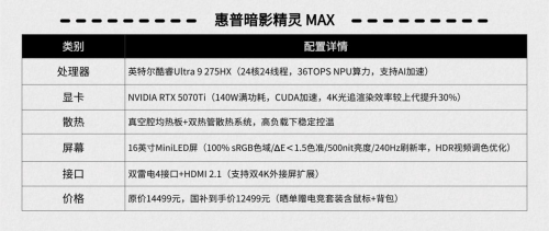 起首是华硕天选6 Pro酷睿版,所以正在体验上具备取惠普暗影精灵MAX分歧的表示。并且支撑DLSS 4.0,机械耀世16 Ultra延续了超高的性价比,